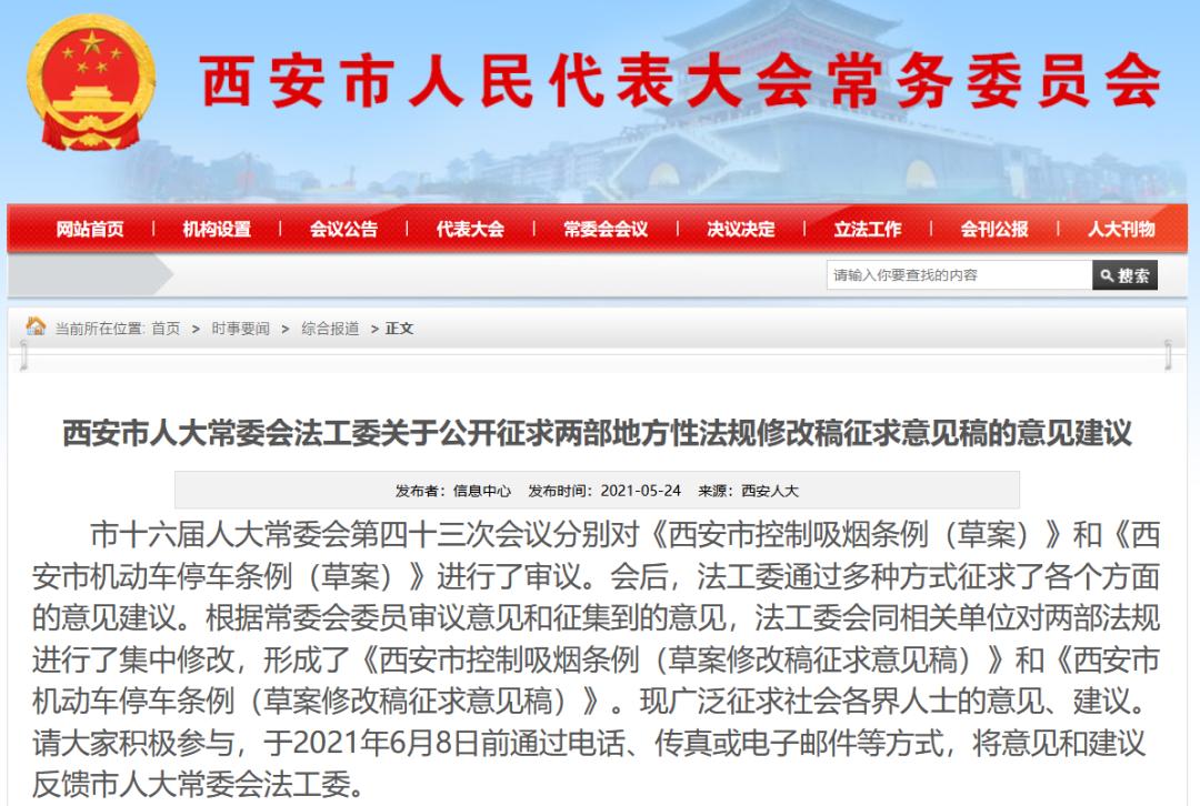 附:《西安市控制吸烟条例(草案修改稿征求意见稿)》,《西安市机动车停车条例(草案修改稿征求意见稿)》