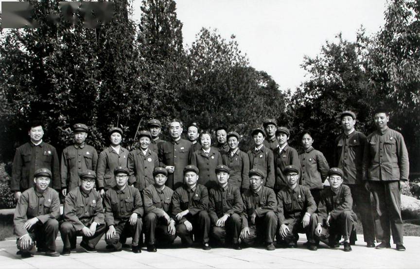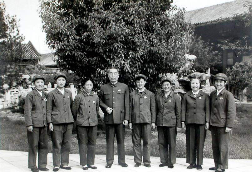 1970年5月20日,周恩来邓颖超与工作人员西花厅合影。