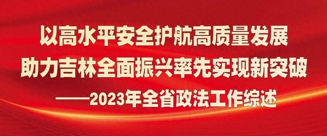 2023年是吉林全面振兴率先实现新突破的开篇之年,也是新时代吉林政法工作砥砺前行的奋斗之年。在省委坚强领导下,全省政法机关站位全局、服务大局,讲政治、讲法治、讲担当、讲奉献,站在对敌斗争第一线,冲在维稳安保最前沿,挺在洪水来袭关键处,倾心保障民生福祉,全力服务振兴发展大局,在白山松水间谱绘了政法事业的崭新画卷。