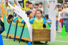 6月6日,在长沙市天心区教育局中建幼儿园“粽情欢畅 浓香端午”主题活动上,小朋友们在进行“龙舟竞赛”。端午节临近,各地举办多彩活动,迎接传统节日。端午节临近,各地举办多彩活动,迎接传统节日。