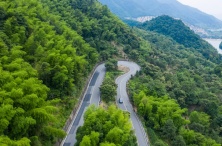 6月4日在浙江省诸暨市赵家镇上京村拍摄的改造提升后的县道(无人机照片)。浙江省诸暨市赵家镇地处山区,地势陡峭狭窄,村民以香榧、茶叶等特色农产品为主要收入来源。浙江省诸暨市赵家镇地处山区,地势陡峭狭窄,村民以香榧、茶叶等特色农产品为主要收入来源。