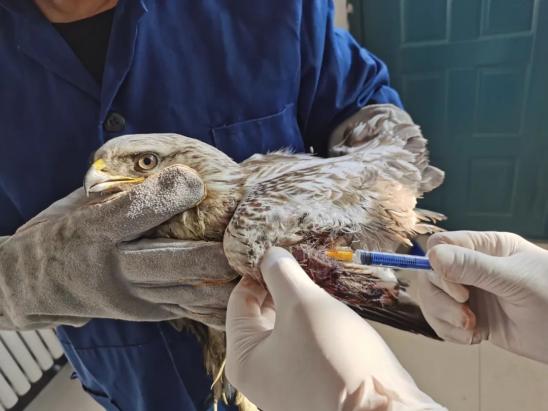 随后,林草局野生动植物保护股工作人员火速行动,立即将毛脚鵟送往黑龙江挠力河国家级自然保护区野生动物救护站进行救治。经过了一天的紧急救治,目前,这只毛脚鵟生命体征恢复良好。