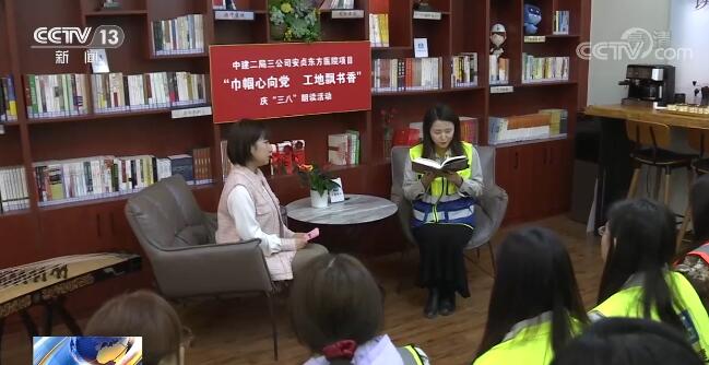 在中建二局三公司北京安贞医院建设项目工地,女职工正在参加 “巾帼心向党,工地飘书香”读书活动。在这个工地,技术人员四分之一是女职工,公司规定女职工在怀孕期不安排加班、夜间作业,女职工在产假期间和哺乳期间享受国家和公司规定,执行休假制度。