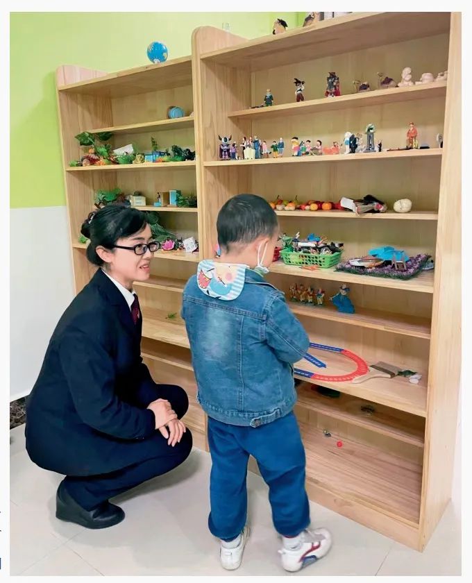 季炯欣检察官(左一)正在协助心理医生为4岁儿童做心理辅导。