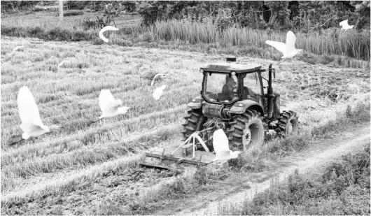 5月23日,农民驾驶农机在浙江省宁波市鄞州区东吴镇的农田里耕地,准备种水稻。 新华社发
