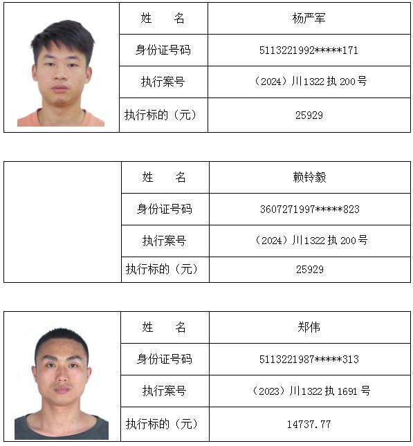 希望广大群众积极转载,共同监督,在找人找财产工作上,助法院执行工作“一臂之力”,让“守信者一路畅通,失信者寸步难行!”