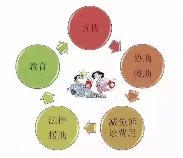 学法知法守法:工会、共青团、妇联、幼儿园、学校等组织和机构要在各自工作范围内开展反家暴教育,广播、电视、报刊、网络等要开展反家暴宣传,居委会、村委会和社会工作服务机构等要配合协助;在救助措施方面,县级或设区的市级人民政府需为家暴受害人提供临时庇护所及临时生活帮助,法律援助机构需提供法律援助,法院也要相应减免诉讼费用。