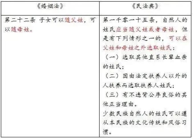 《民法典》第一千零一十五条规定使儿童的“姓氏权”不再局限于随父姓或随母姓,可以有更多的选择。