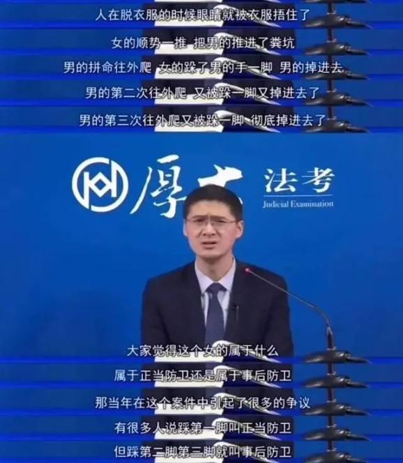 这种情况下,该名妇女的行为是正当防卫,还是防卫过当?有人还给细分了一下,说第一脚是正当防卫,第二脚是防卫过当。