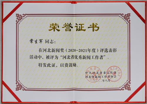 2022年,邯郸新闻传媒中心全体同志心往一处想、劲往一处使,扭成一股绳、铆足一股劲,抢抓机遇、乘势而上、真抓实干、砥砺前行,先后荣获河北新闻奖一等奖7个,赵超构新闻奖一等奖1个,省第九届“好记者讲好故事”二等奖1个,城市党报媒体融合奖二等奖1个等一系列重要奖项;在省委宣传部、省新闻工作者协会2022年“新春走基层”活动中获1个先进集体、1名先进个人、2件优秀作品;1人获评河北省优秀新闻工作者。
