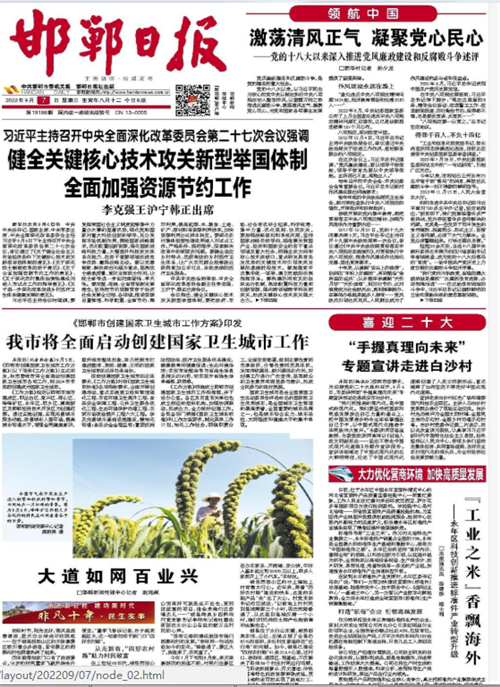 选派骨干记者策划“新春走基层·踔厉奋发向未来”大型融媒体新闻宣传活动,与所属各主要新闻发布平台同步重磅推出一系列深度报道和图文专版。积极参与“喜迎二十大 邯郸向未来·滏河人家”采访活动,在重要版面、重要位置刊发了《巡河人的脚步》《一泓清水引客来》等一大批有影响、有份量、有质量的深度系列报道,累计推出重点报道100余篇。