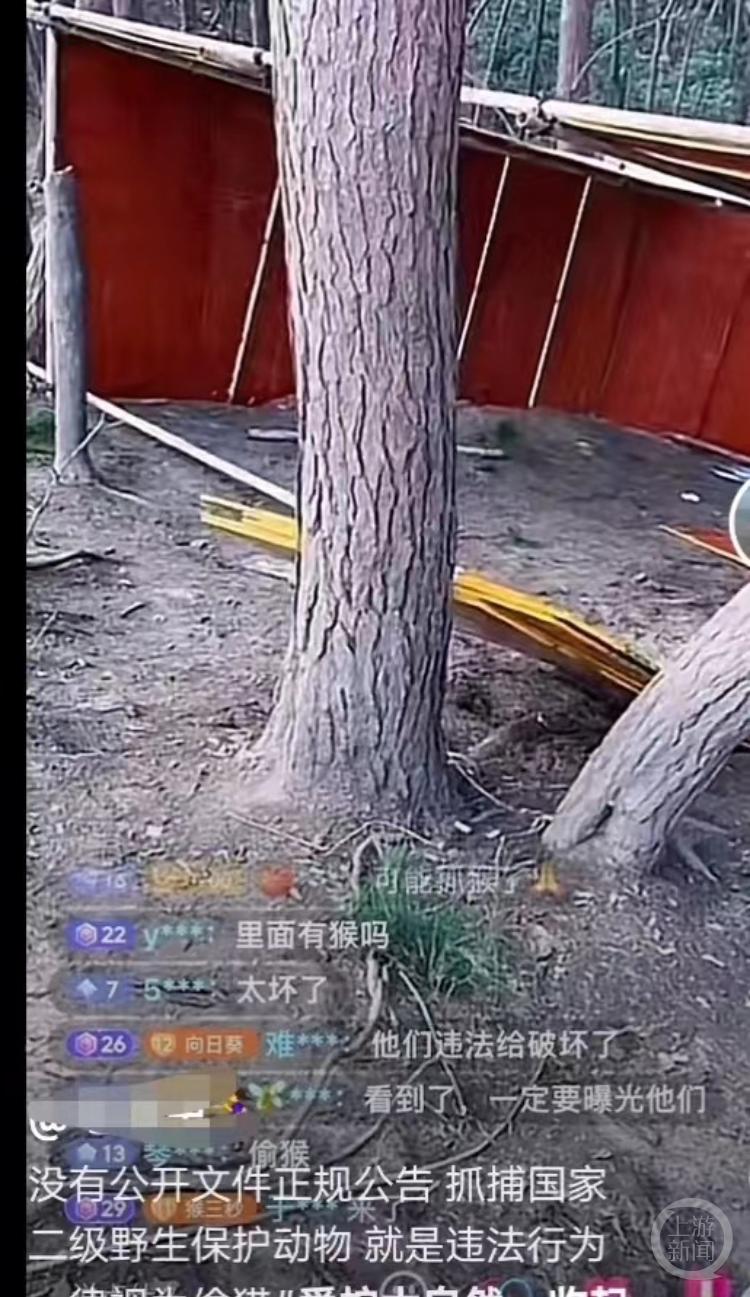 博主“揽月”发布视频称,黔灵山公园管理处野蛮抓捕国家二级保护动物猕猴。其发布的视频显示,有人试图靠近猴群。博主“锦时”也发布视频质疑称,公园是否有权利捕捉猴子?还有博主在黔灵山进行直播时称,多人在设陷阱围捕猕猴或变卖。