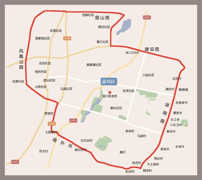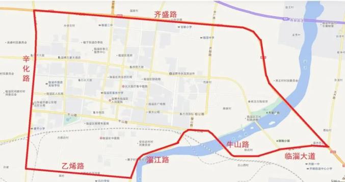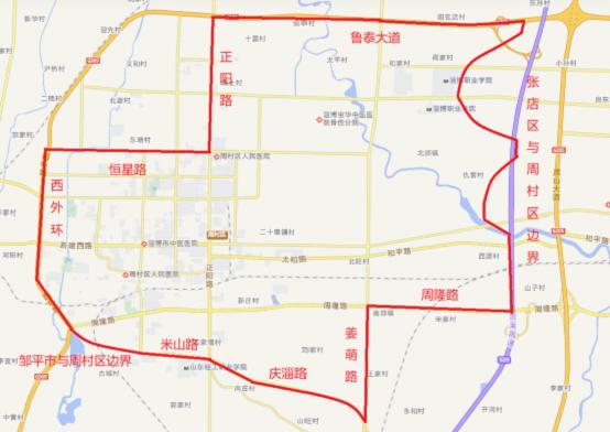 3. 南至周隆路-姜萌路-庆淄路-米山路-邹平市与周村区边界;