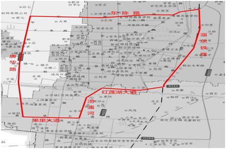1. 东至湖南路(含龙泉镇韩圣村、大土屋村,洪山镇西省村、东省村、解庄村、小红卫村、东工村、蒲家村、北杨家村,寨里镇紫御园小区、北沈村);