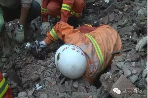 10只小狗被埋拆迁废墟 消防员徒手施救