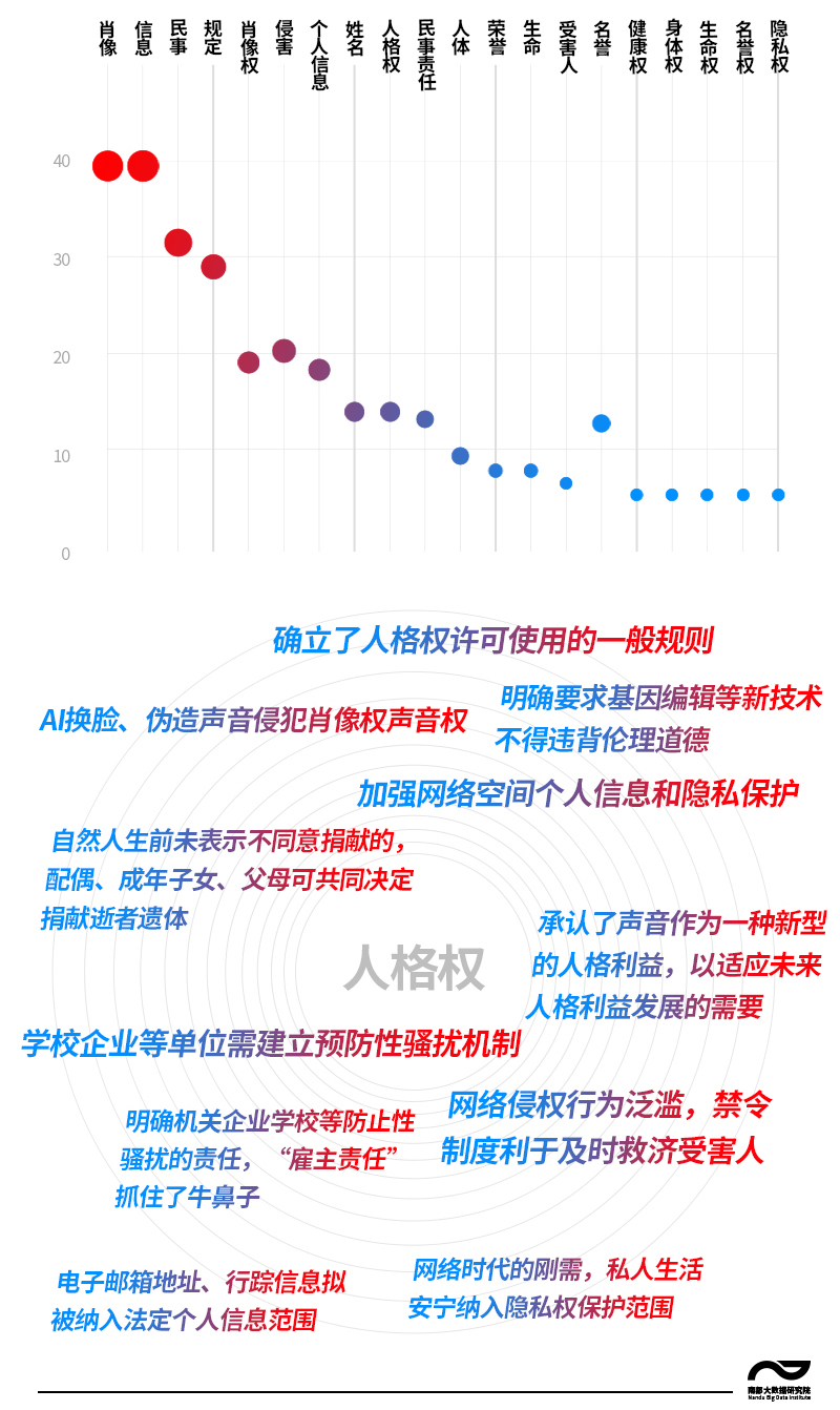 *数据来源:根据民法典全文梳理,圆圈大小代表人格权编中该词出现次数多少,亮点为根据公开报道部分列举。