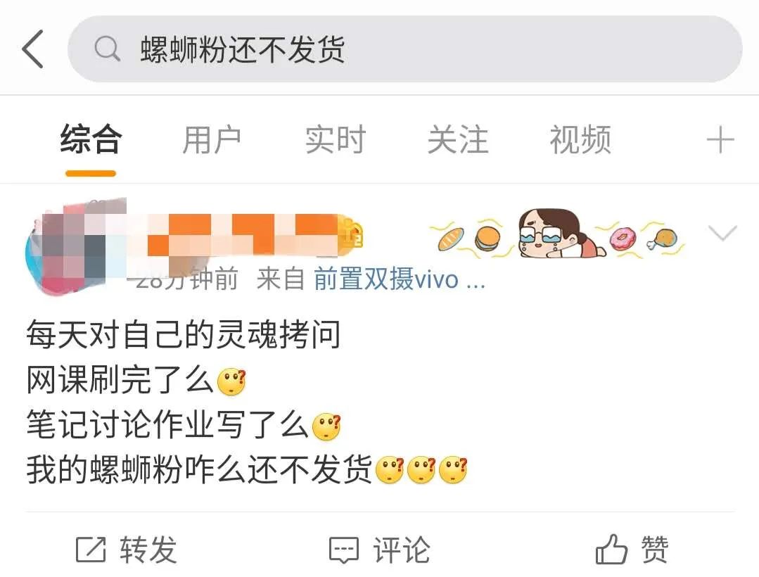 真实事件:疫情期间,全网催单螺蛳粉,网友:“两个月过去了,我的螺蛳粉怎么还没发货……”而口罩的发货时间更是遥遥无期……