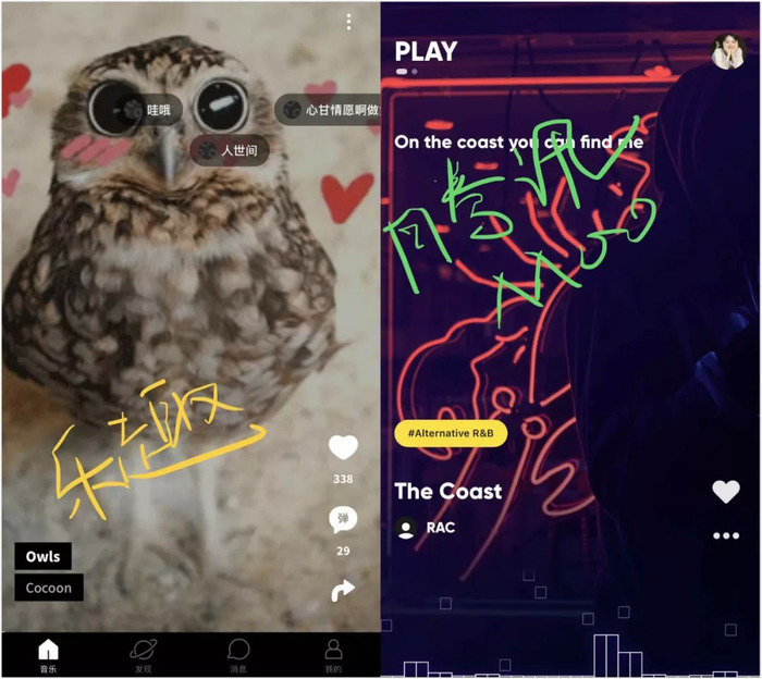 从社交的逻辑上来看,MOO与乐趣之间的差别很大。前者着重于音乐本身,后者更强调音乐和社交之间的结合。