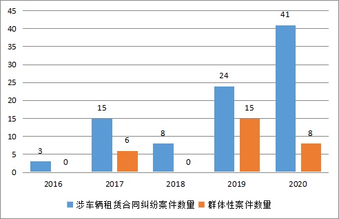 (一)案件数量总体增长,专业车辆租赁公司致群体性案件出现