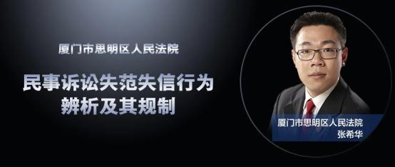 大家好,我是厦门市思明区人民法院的张希华。今天我跟大家报告的主题是:民事诉讼失范失信行为的辨析及其规制。我将从诉讼失范失信行为的现状及危害说开去,谈谈当前整治失范失信行为的困境及如何突破,并主要就各类型失范失信行为的识别方法与规制依据进行介绍。