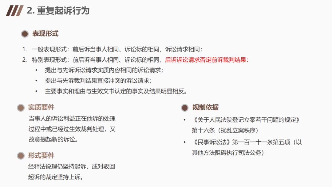 (1)提出与先诉诉讼请求实质内容相同的诉讼请求;