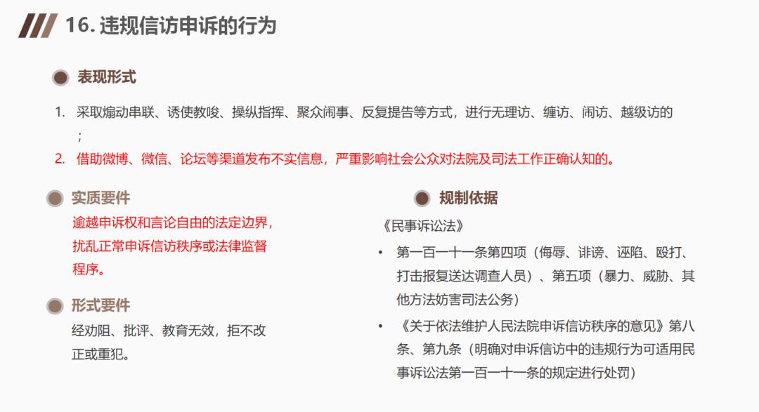 逾越申诉权和言论自由的法定边界,扰乱正常申诉信访秩序或法律监督程序。