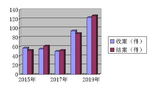 2015-2019年我院共受理装饰装修合同纠纷案件383件,结案379件。2015年-2017年收案数量总体上基本持平,呈现小幅降低趋势。然而2018年收案数急剧增至94件,结案数为88件,同期增幅分别达88%和69%。2019年收案数为123件,结案数为127件。