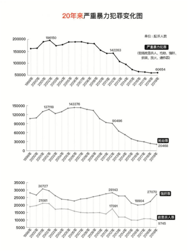 惜字如金的工作报告不惜篇幅对20年数据背后的意义着重阐释:严重暴力犯罪及重刑率下降,反映了社会治安形势持续好转,人民群众收获实实在在的安全感;新型危害经济社会管理秩序犯罪上升,表明社会治理进入新阶段,人民群众对社会发展内涵有新的期待。