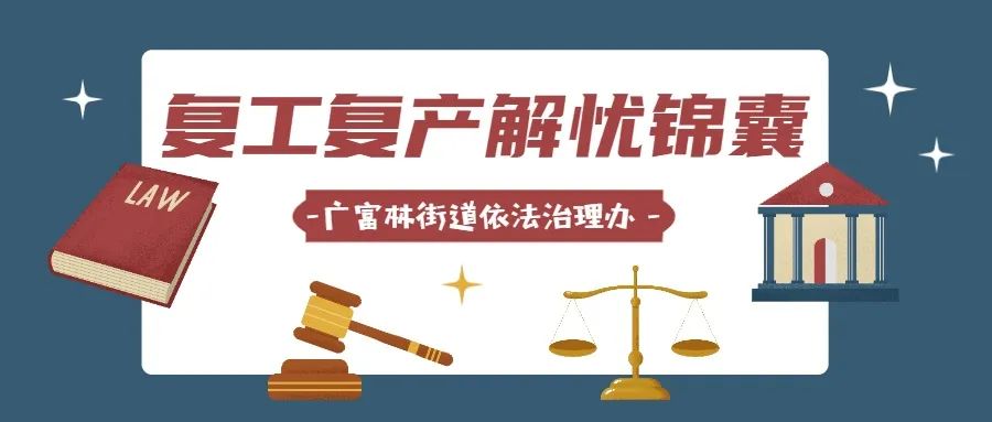 为积极推动企业复工复产,有效降低因疫情引发各类矛盾的法律风险,维护社会稳定,广富林街道聚焦“后疫情”时期复工复产易遇到的法律问题提供“解忧锦囊”,助力市民朋友维护合法权益。