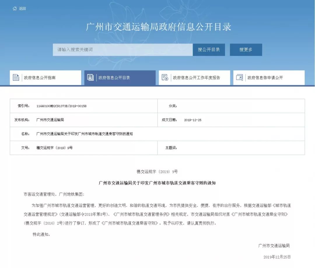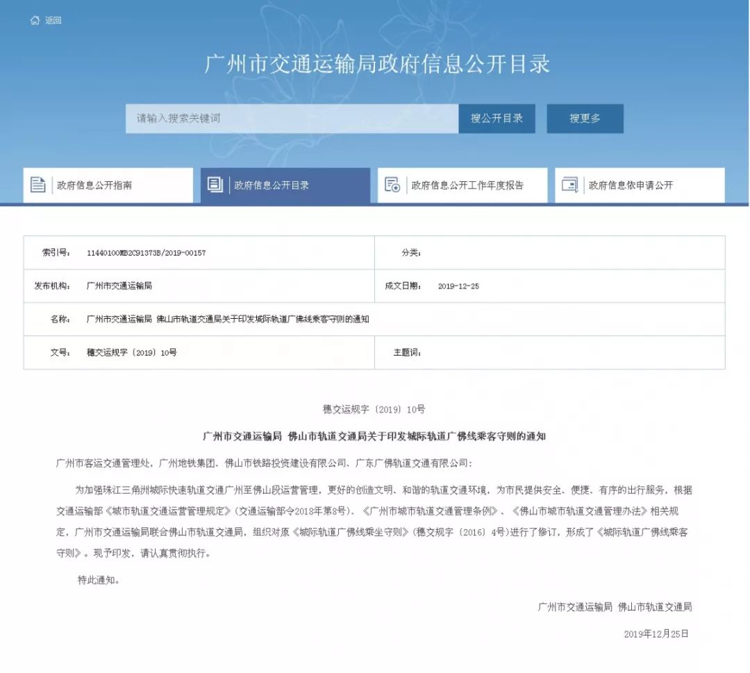 为加强广州市公共交通(含公交、地铁)客运管理,维持良好的公共交通出行秩序,市交通运输部门在广泛收集人大代表、政协委员、市民乘客等社会各方意见和建议的基础上,修订了《广州市公共汽车电车乘车守则》《广州市城市轨道交通乘客守则》及《城际轨道广佛线乘客守则》等3份乘客乘车守则(以下简称《守则》)。