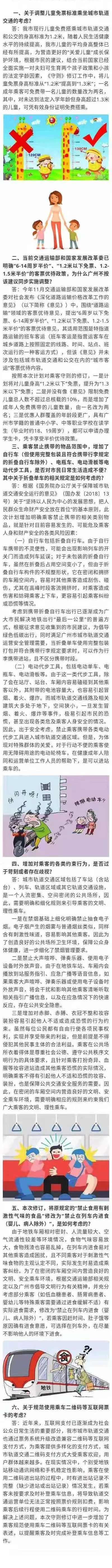 一、修改了儿童免费乘车规则。一是将儿童搭乘公交、地铁免费身高线从1.2米提高到1.3米,同时,除了身高标准以外还考虑了年龄因素,部分身高超过1.3米但未到法定入学年龄的儿童凭有效证件仍可免费乘车;二是结合全面二孩政策,考虑到乘客的现实需求,将一名成年乘客携带免费儿童的人数从一名调整为两名。