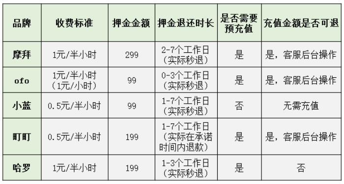 在车费预充值方面,40.85%的消费者不能接受车费预充值,25.4%能接受最少预充值金额为20-50元,22.91%能接受10元以内,但是,线下调研中只有小蓝单车无需预充值车费,并且个别品牌明确注明充值车费不可退还。