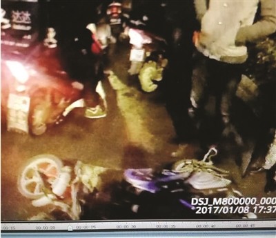 扬州警方通报,监控视频显示:1月8日下午5点20分,扬州金域蓝湾小区东侧公交站台附近的非机动车道,一名骑电动车的中年男子与一名老年妇女相撞,骑车男子当场倒地。老年妇女看到伤者比较严重,匆匆逃离了现场。