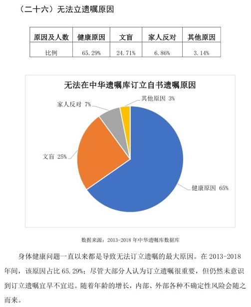 此外,无法立遗嘱原因中,高达65.29%的人是因身体健康问题无法立遗嘱。