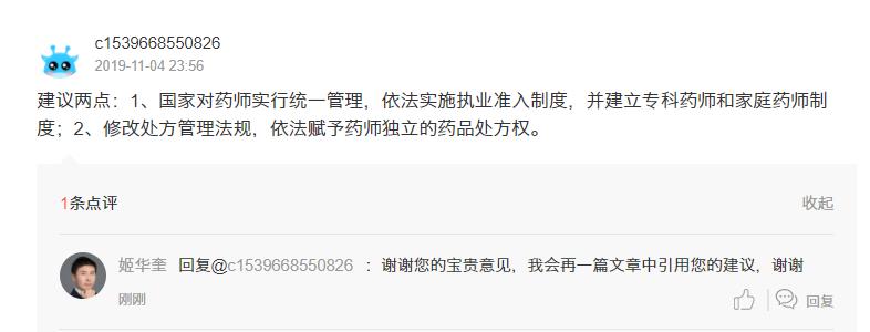 以人民健康为核心,要实现由以治病为中心向以健康为中心转变,健康促进与基本医疗卫生,全方位推动个人健康促进,不能忽视执业药师、护士和企业的作用,期待出台细化对社会办医提供基本医疗服务的“鼓励措施”,期待社会办医与公立医院同级别、同水平医生享受同样的科普传播的机会。
