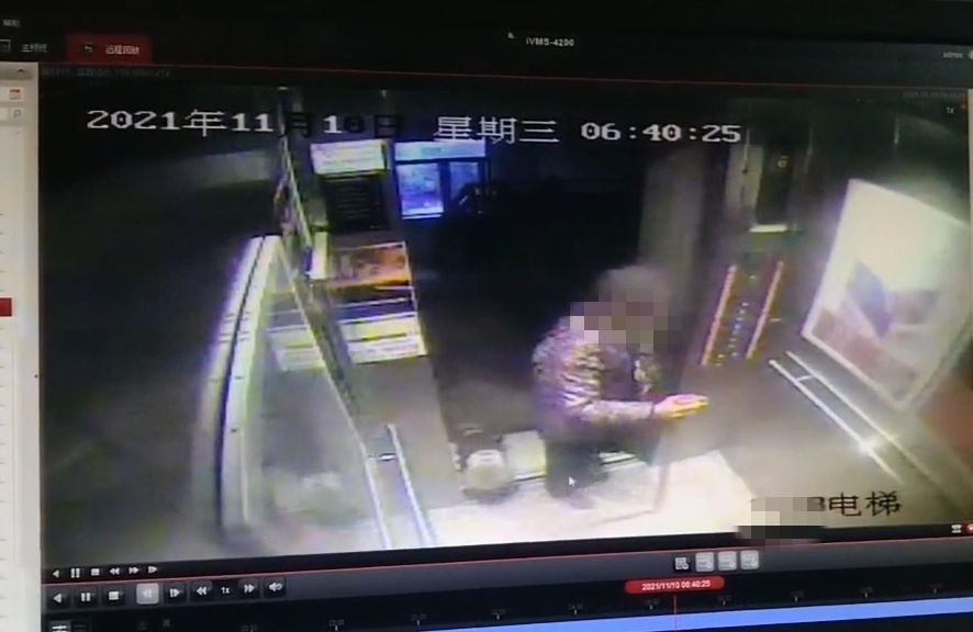 虽然卢某林被围堵的地点没有监控录像,卢某林家人们还是通过小区知情人得知了围堵朱某林的狗主人家庭地址。家人们在物业处查看了狗主人家楼栋的监控。在11月10日-12日的监控录像中,遛狗老人都拿着一根粗长的棍子出门。