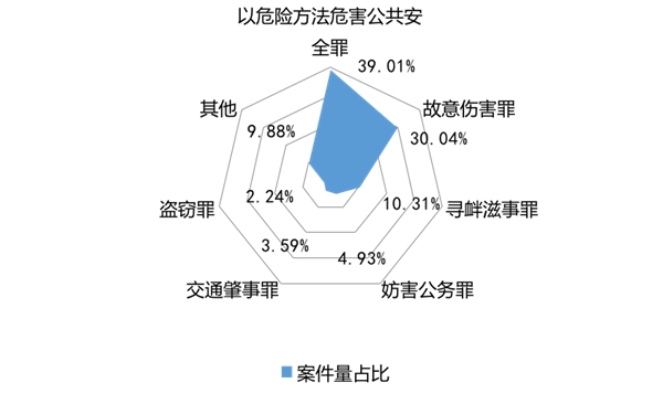 涉案罪名集中在以危险方法危害公共安全罪和故意伤害罪,合计占比近七成。在公交车司乘冲突刑事案件中,案件量占比排名前六的罪名为:以危险方法危害公共安全罪,故意伤害罪,寻衅滋事罪,妨害公务罪,交通肇事罪,盗窃罪。其中,以危险方法危害公共安全罪占比为39.01%,故意伤害罪占比为30.04%。