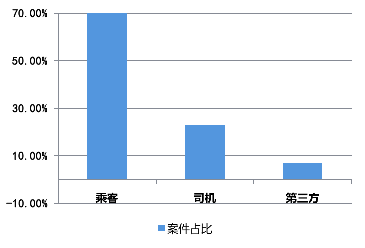 公交车司乘纠纷案件中,50.54%受害人为司机,乘客占20.97%,其他乘客占6.45%,第三方为5.38%,民警占4.30%。