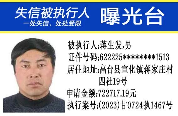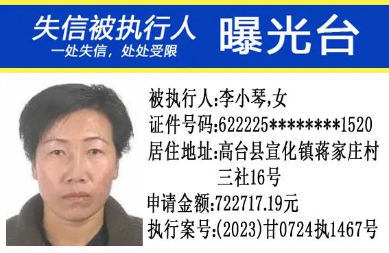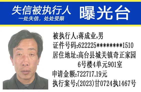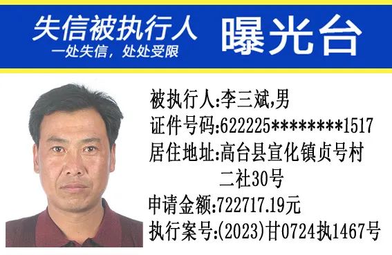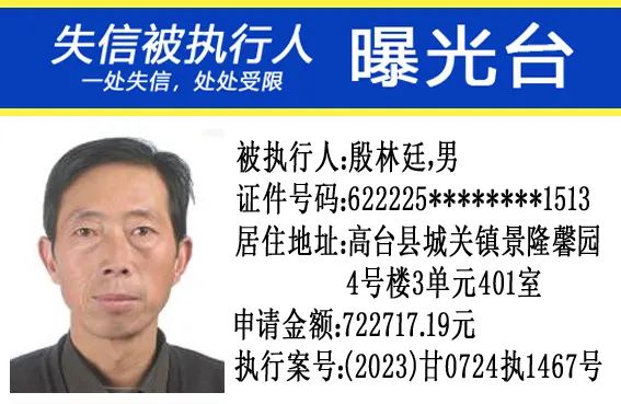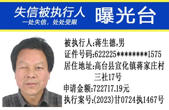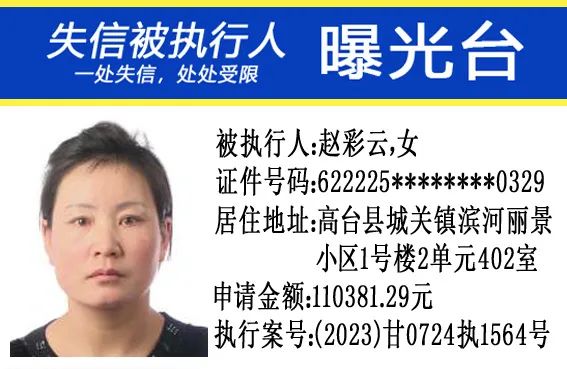 甘肃省高台县人民法院公布失信被执行人名单公告(2024年第4期)
