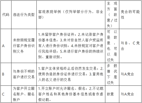 在此,需要明确一个问题:“与身份不明的客户进行交易”和“为客户开立匿名账户、假名账户”这两个行为位于同一条同一款同一项之中,那么,这两个行为是作为同一类型的违法行为进行处理还是作为不同类型的违法行为进行处理呢?如果作为同一类型的违法行为进行处理,意味着“与身份不明的客户进行交易”和“为客户开立匿名账户、假名账户”不能并罚。笔者认为,尽管《反洗钱法》将这两个行为放置在同一法条的同一款项之中,并不意味着两个行为属于同一类型的行政违法行为,这两个行为在行为人的主观态度、客观表现等方面存在显著差别,放置在同一位置,只是表明这两个行为的危害程度是一样的。