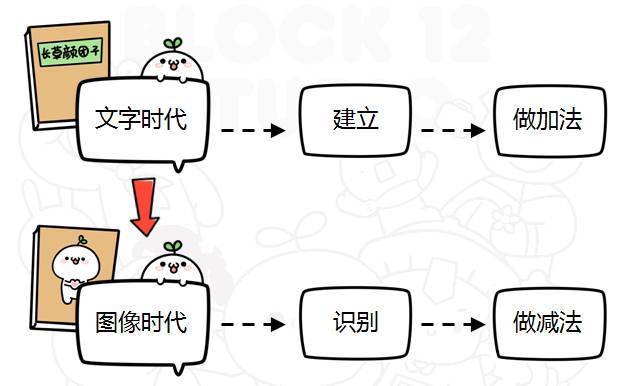 现在在由文字时代向图像时代转变。文字时代最重要的标准是建立,用加法做认知;图像时代最重要的是识别,现在物质丰沛,用减法来剔除其他信息,留下最突出的点。