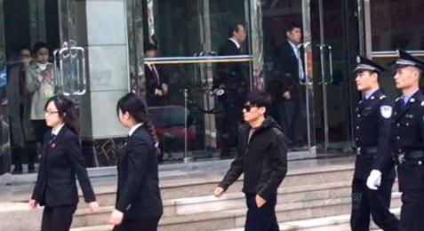 2016年10月18日,王宝强及其律师在法院工作人员的带领下进入法院。资料图