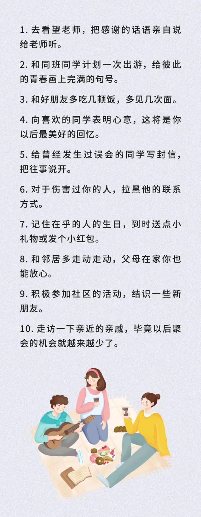 和朋友家人们好好告别,准备好去和五湖四海的人见面。