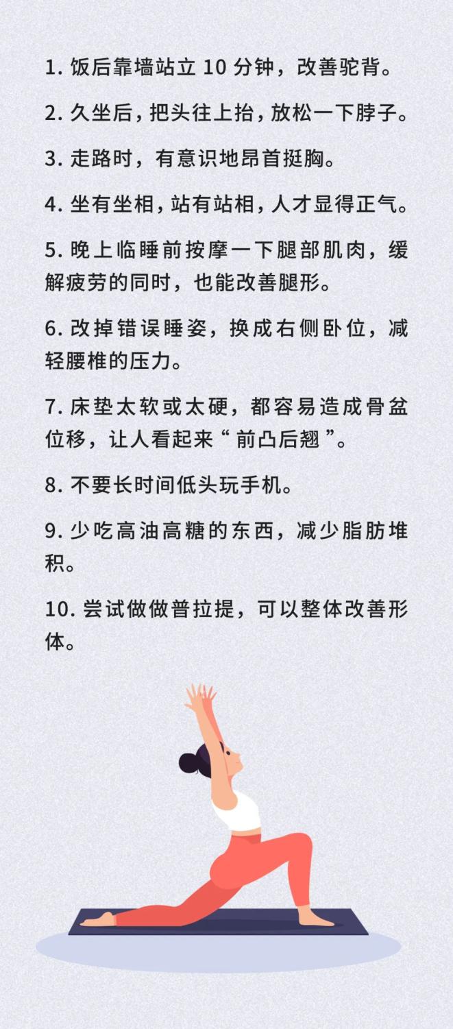 养成正确的体态,这不仅是对健康负责,也能改善你的气质,让你的形象升级。