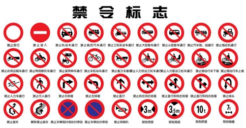 答:通常禁令标志的颜色为白底、红圈、红杠、黑图案、图案压杠,形状为圆形、顶点向下的等边三角形。例如:常见的禁停标志、禁行标志。