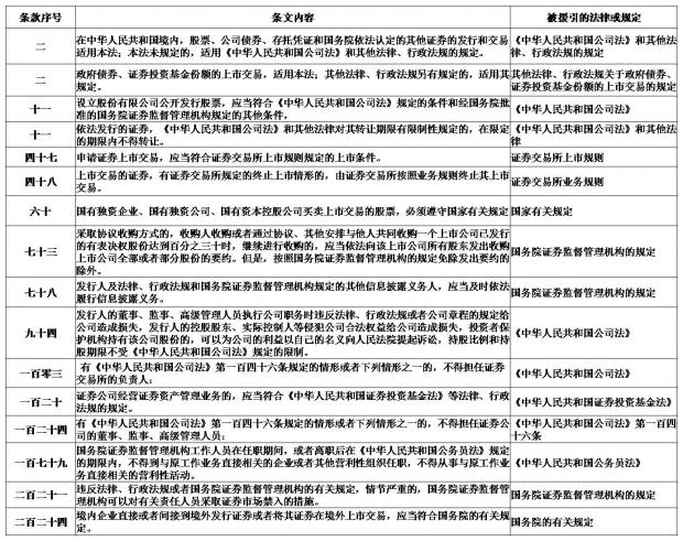 根据上述有关条款,新《证券法》中援引的有关法律及相关规定包括: