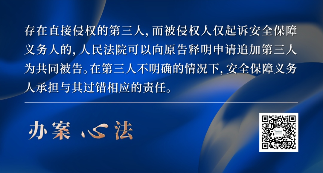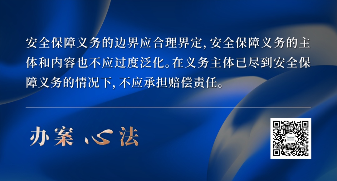 设定安全保障义务的目的,在于平衡利益和分配社会正义。随着社会形态变化、新科技出现、新业态发展,安全保障义务的边界也在发生变化。案件办理中,法官应从安全保障义务人、受害人、第三人的不同角度,结合常情常理和日常生活经验法则的运用,通过多维度分析,在个案中对安全保障义务的具体责任进行确定,以寻求安全保障义务人与受害人之间权益最大限度的平衡。