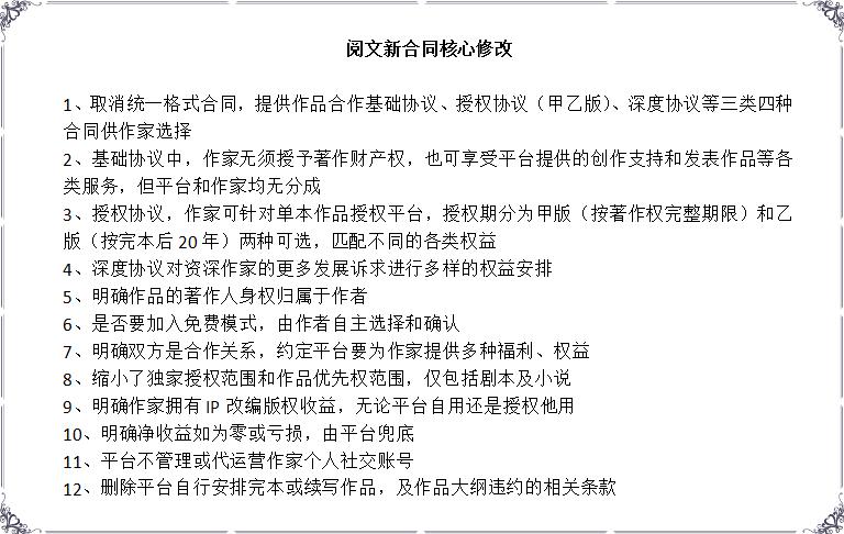 原标题:《阅文修改霸王合同,对12个条款动大手术》