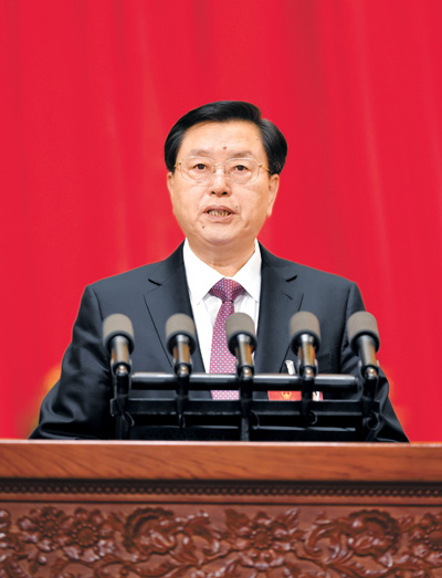 3月9日,十二届全国人大常委会委员长张德江受十二届全国人大常委会委托,向十二届全国人大四次会议作《全国人民代表大会常务委员会工作报告》。