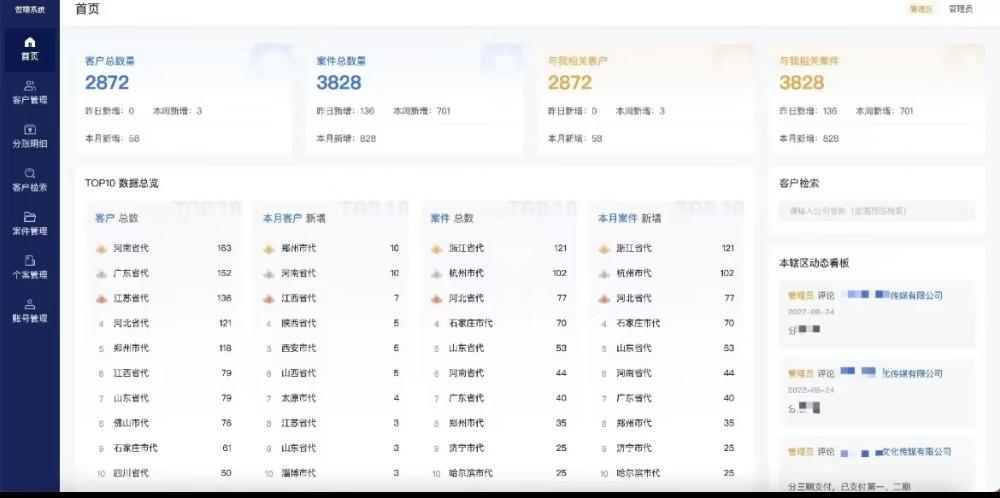 记者注意到,萧萧这起案件中,机构委托的法律咨询服务公司,曾在抖音上晒出其客户数据,表示“全国直播公会客户即将突破3000大关”,数据显示,其客户总数量达2872,案件总数量达3828,仅“昨日新增案件总数量”就有136件。